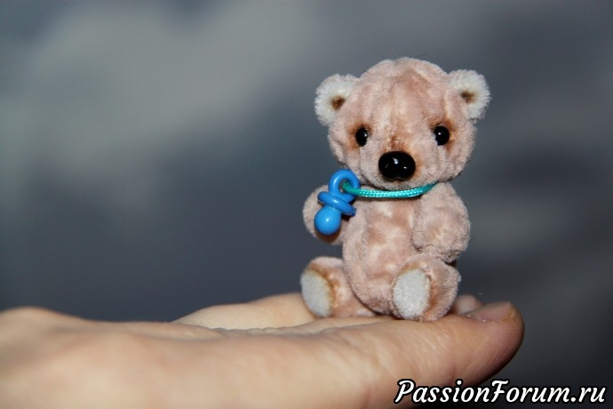 P.S. Малыш выполнен в технике тедди, голова и лапки подвижны. Рост 4 см. Самостоятельно сидит.