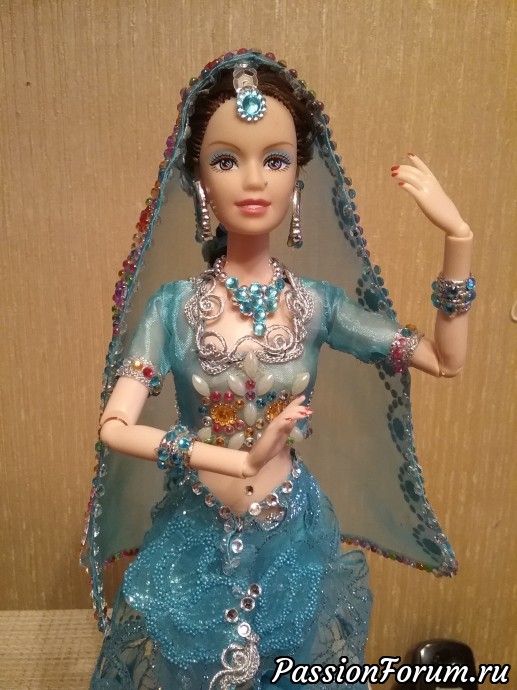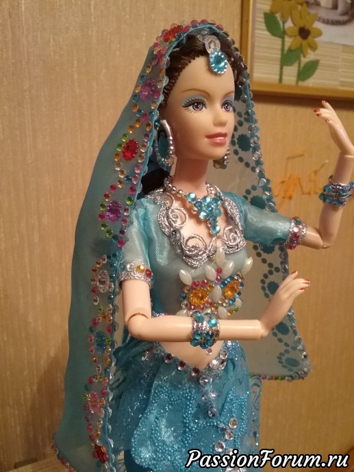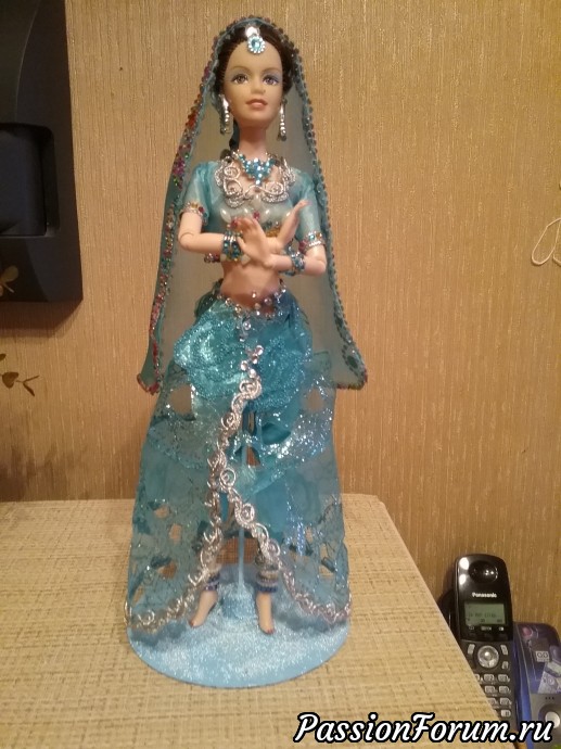 Я хотела переделывать, но блестяшки на клей сажала, уже не оторвать. Красная, которая перед этой, точно индуска — мои в Индии долго жили, оценили.)