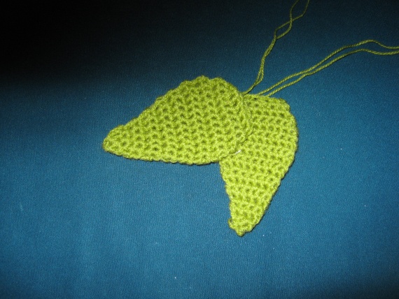 1 и 2 этапы мы отставляем в сторону. Далее берем нить зеленого цвета и начинаем вязать.