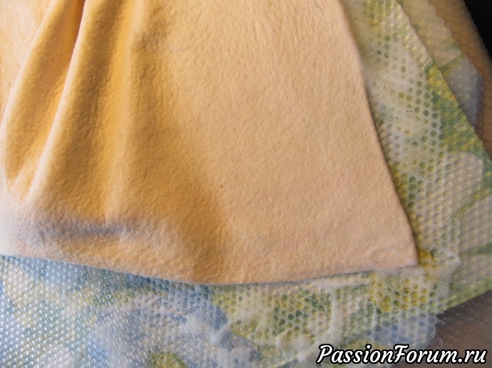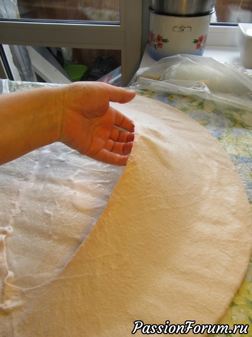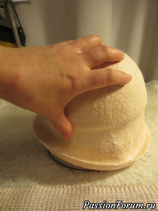 Уже снято с шаблона,форма начинает вырисовываться. Валяние по основному принципу- главное- усадить самое широкое место- окружность.