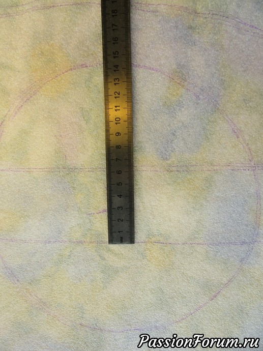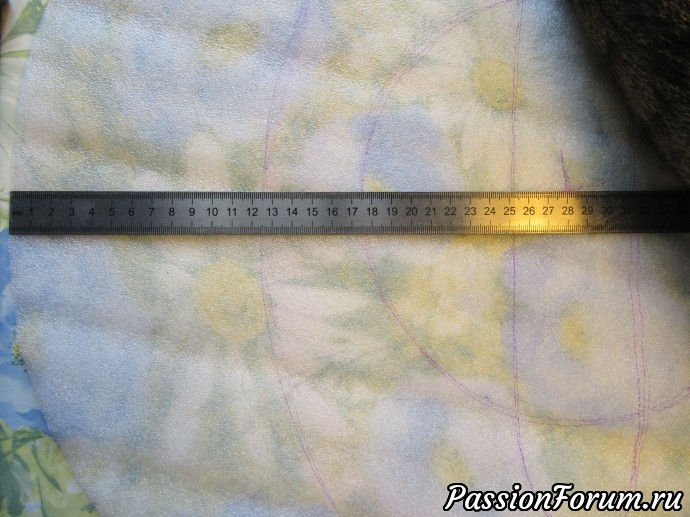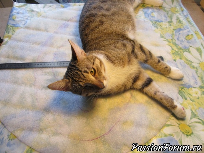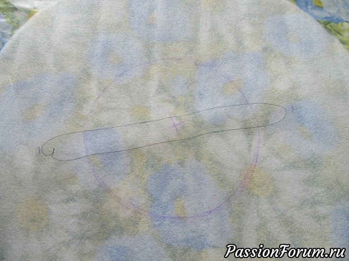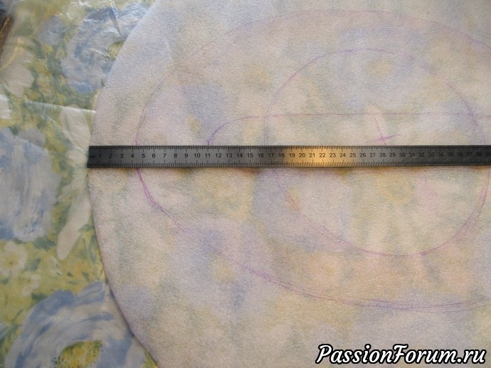 Шаблон у меня 55-56 см. С помощью нити измерила окружность и поменяла ее форму.