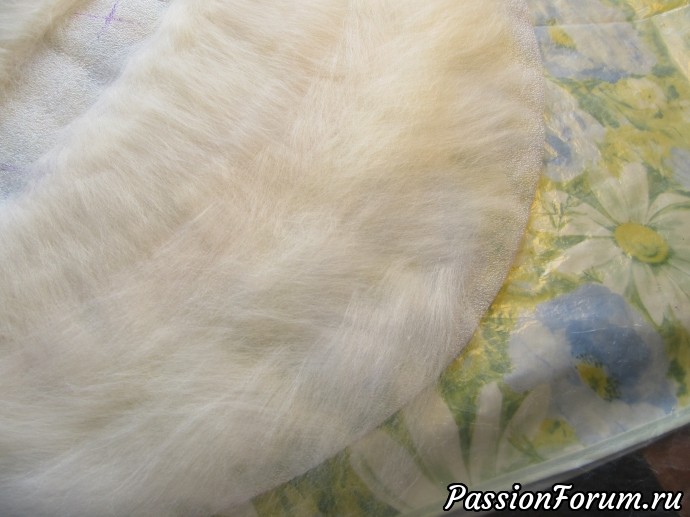 Тут я нарисовала на шаблоне вспомогательную линию- по этой линии мне нужно будет положить шерсть так,что бы стянуть место посадки на голову.