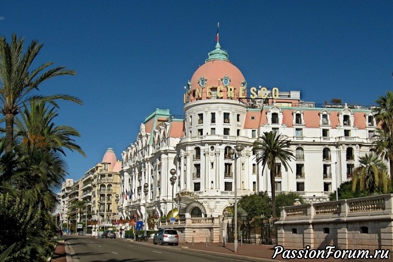 Отель "Негреско" - главная достопримечательность Ниццы и Променада. Очень интересна его история. Негреску -фамилия человека, который его задумал и создал, не имея при этом особых средств. Открыт отель был перед Первой Мировой войной, в войну здесь был госпиталь, богатых клиентов было мало, все пришло в упадок и стояло закрытым до 1957 года, когда его купила семья Ожье. Жанна Ожье владеет им до сих пор, ей почти 100 лет. В завещании сказано, что в интерьерах нельзя ничего менять в течение 99 лет после ее смерти. Она сама переделывала отель, сделав каждый этаж и каждый номер своеобразным. Она собирала раритеты по всей Франции. В список наследия ЮНЕСКО внесено не только само здание, но все, что внутри. Для этого были изменены правила.