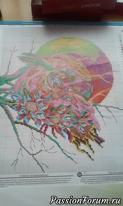 Насчёт сюжета — красиво! Я такие люблю — ночь, луна, какой-то зверь или птица. А то, что цвета на схеме не соответствуют, так это, чтоб лучше эти цвета отличать. Когда рядом 4-5 оттенков одного цвета — только путает. Хотя я, к примеру, вообще люблю схемы чёрно-белые, чтоб только значки были.