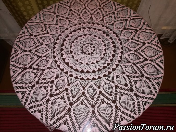 Добрый день, дорогие рукодельницы! Первый раз решила поделиться и результатами своей работы. Обожаю круглые столы, люблю "одевать" их в разные платья и создавать эти наряды своими руками. Вот связала новенькую скатёрочку на круглый стол и назвала её "Яблоневый цвет". Для вязания скатёрочки выбрала нитки Ирис нежно-розового цвета. Использовала крючок 1,25. Размер получился 170 см в диаметре. Вязала с удовольствием в преддверии весны. Если кому нужна такая скатёрочка, могу продать эту или связать другую. А также приглашаю в мой магазинчик вязанных мною скатёрочек и салфеточе: hobbyportal.ru/shop/nellishop-krasnodar/