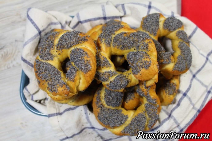 Выкладываем на чистое полотенце. Окунаем в мак и выкладываем на противень. Выпекаем в предварительно разогретой духовке при 180 градусов, 20-25 минут.