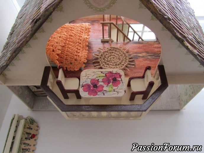 Декупаж салфеткой. Немного объемного декора на балконе, стене, вокруг окон - шпатлевкой.