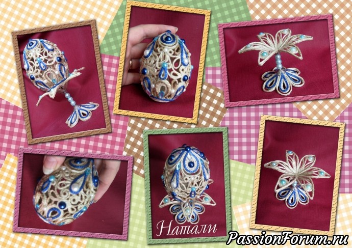 Яичко на подставке. Джутовая филигрань.