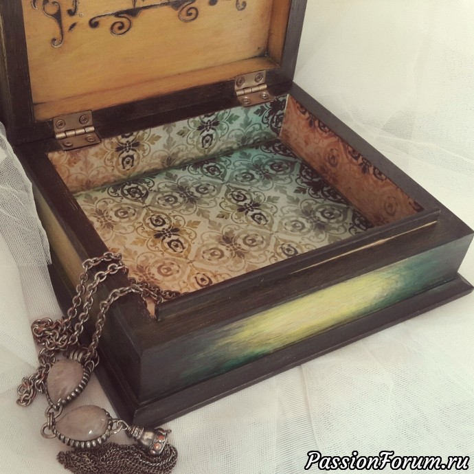 Шкатулка прелестная. Вроде бы много всего разного намешено, но ансамбль получился совершенно гармоничный, прямо как из песни «слово не выкинешь».