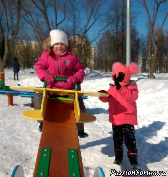 А на голове у них покупные бейсболки. Но Вика носит шляпку, которую я вязала Насте на день рождения. Так было приятно увидеть ее в ней!..
