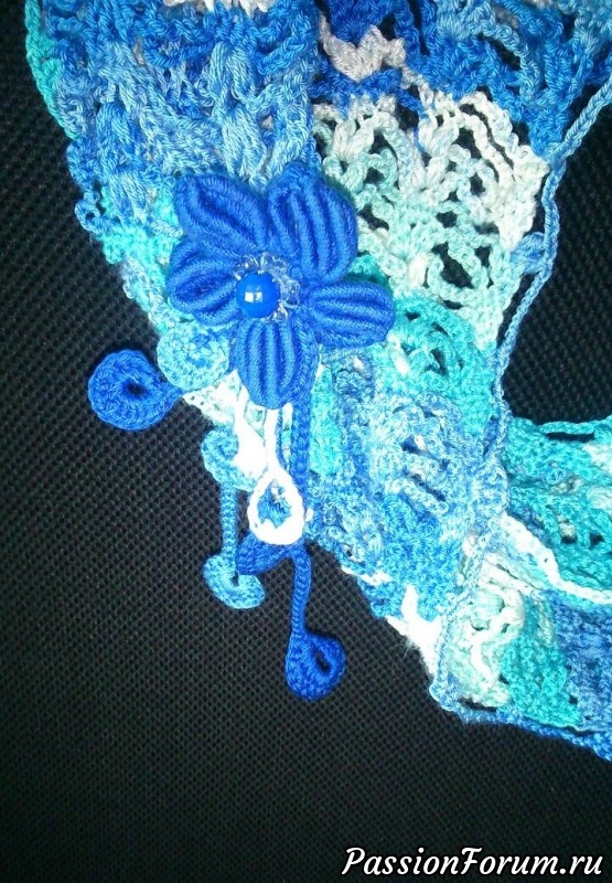 Яна поддержала моё предложение удлинить шарф на полметра и украсить его обязательно цветком. И цветок должен быть только с висюльками! А с какими, я уже знала - однозначно с теми, схема которых дана в топике про этот летний шарф.