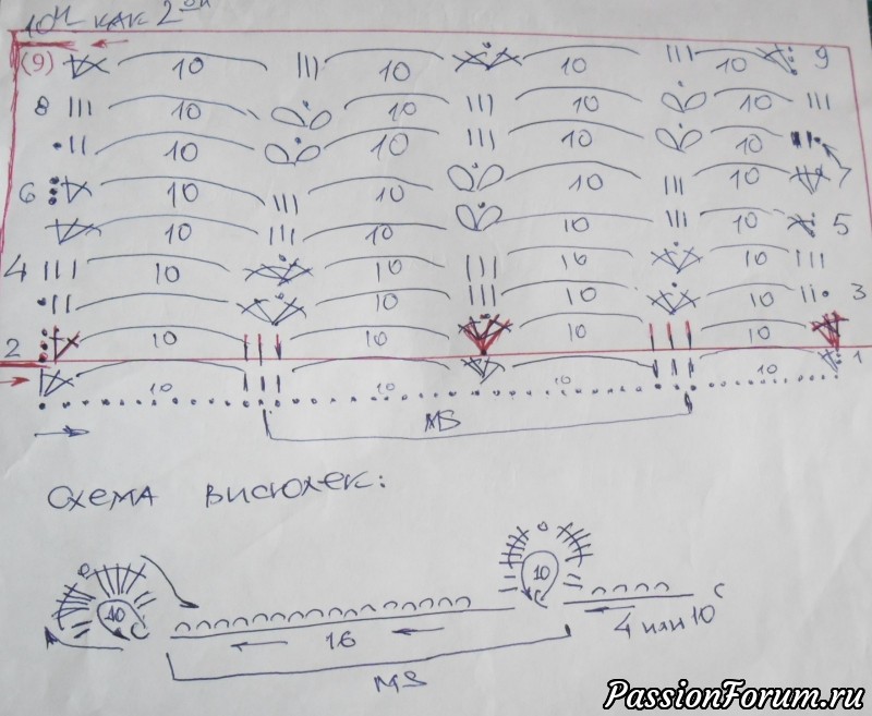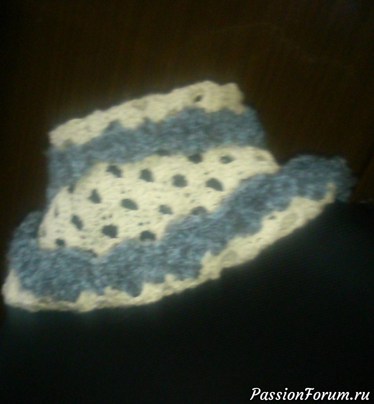 Мы с мужем собрались как раз в отпуск. Нужно же чем-то занять себя в поезде?.... Быстро нашла подходящие нитки под цвет шапок девочек, вооружилась крючком, и всю дорогу пробовала вязать. Но вместо прямоугольника у меня получалась трапеция (не разгадала рисунок вязки по фотографии). Добравшись до места, тут же написала Ирине комментарий в этот топик с просьбой о помощи. Она откликнулась сразу и прислала мне полную схему раппорта рисунка.