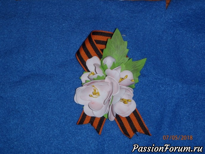 Каждый год меня просят друзья, соседи, родственники и просто знакомые сделать брошь к празднику Великой Победы, ранее я делала их просто из лент, но в этом году познакомилась с таким материалом как Фоамиран, и на столько он меня очаровал, что в этом году мои броши таковы. С наступающим Праздником дорогие форумчане.