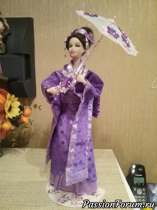 Ну вот, попыталась сделать японочку. С прической намучалась - очень густые волосы, а выдергивать побоялась. Поэтому пришлось лентой держать, а не заколками - не совсем японисто получилось