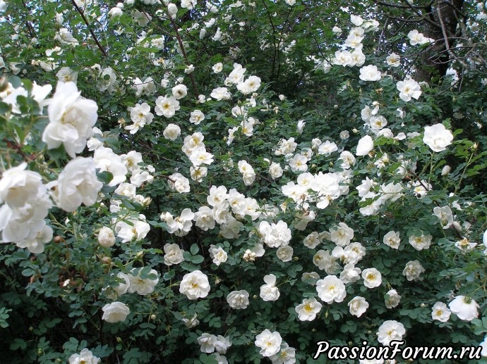 Вот такой роскошный шиповник рос возле соседней дачи. Потом хозяева решили сменить ландшафт, полностью его вырубили и заасфальтировали площадку у ворот. Фото сделаны несколько лет назад