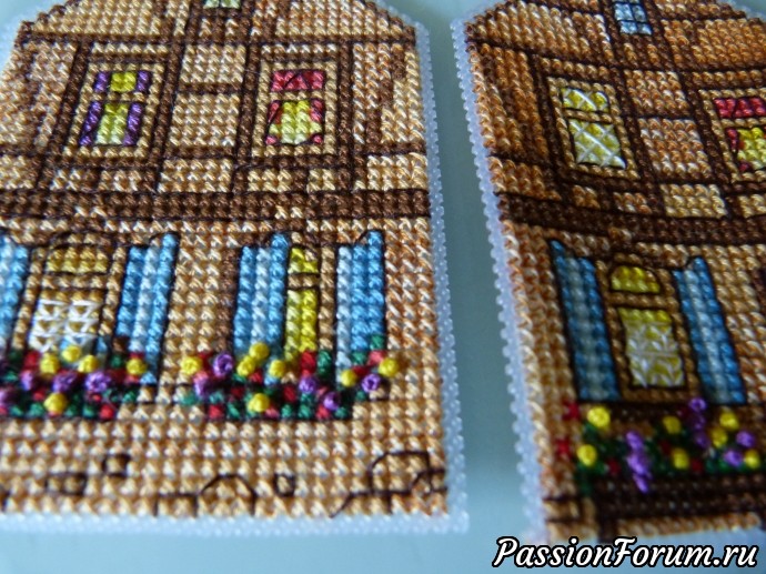Мне показалось, что в данном варианте не нужен блеск от бусин. Домик получился более уютным.