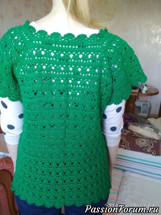 Всем добрый день! Лежали нитки "Пехорка" классический хлопок, ярко-зеленого цвета. Долго не могла придумать к ним узор. И вот, наконец, свершилось! В результате получился вот такой жакетик. От ниток не в восторге, несколько толстоваты и вес изделия (ушло 500гр) чувствуется. Выношу на ваш суд! Вязала сверху, схемы прилагаю.