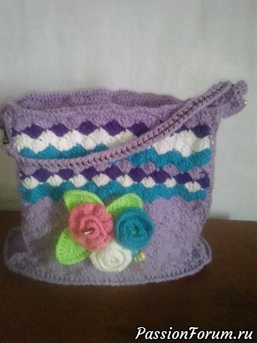 Добрый день! Вот связалась сумочка для себя крючком ,это моя первая сумка.Спасибо за внимание.