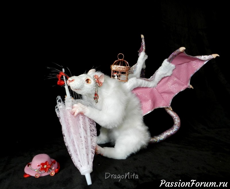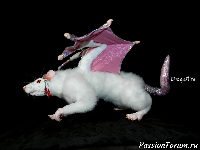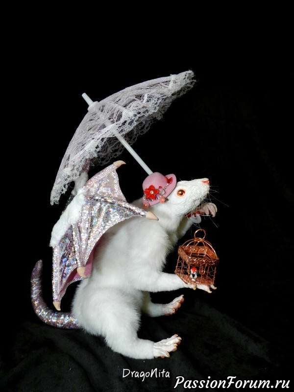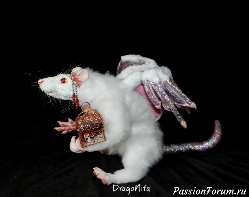 Крыса выполнена на заказ. Возможен повтор в любой цветовой гамме, а так же без крыльев или с перьевыми крыльями.