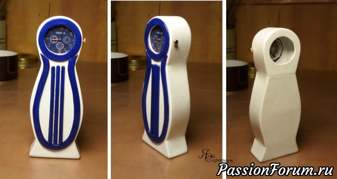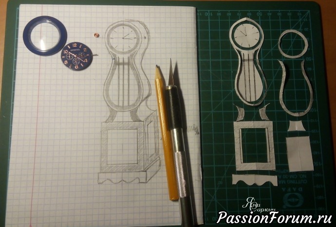 Когда определялась с деталями, нужно было обязательно учитывать не только желаемые размеры и внешний вид, но и как механизм часов будет крепиться внутри, длину штырька, которым регулируются стрелки, возможность замены батарейки и прочее, на первый взгляд несущественное :)