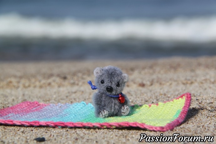 Малыш выполнен в технике тедди, голова и лапки подвижны. Рост 4 см.