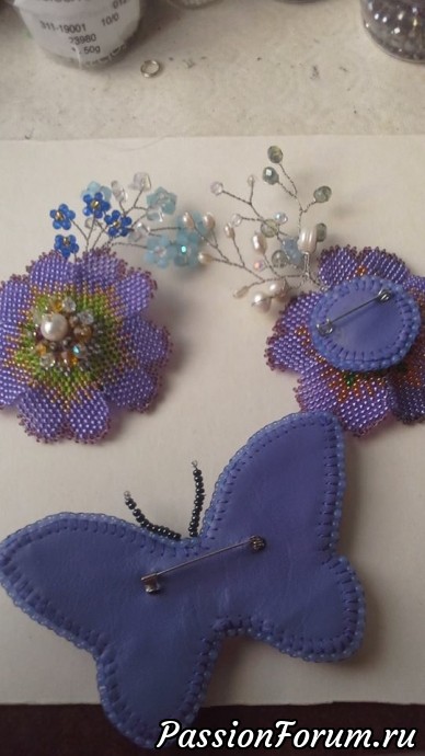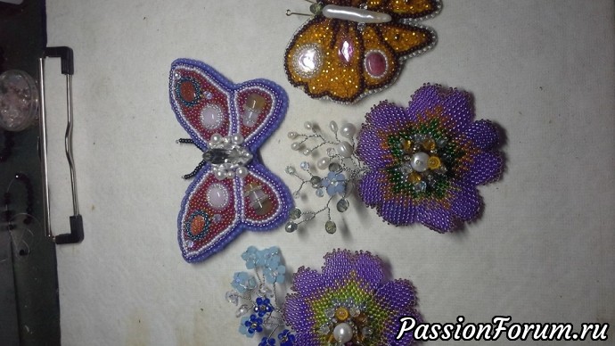 Здравствуйте девочки.Если посмотреть мою последнюю работу- то просматриваются на рабочем столе цветы. Была вначале задумка сделать колье с цветами . Но в процессе все переигралось и они не вошли в работу. Но зато какие чудесные получились брошечки. А к цветам присоеденились и бабочки. Как Вам??