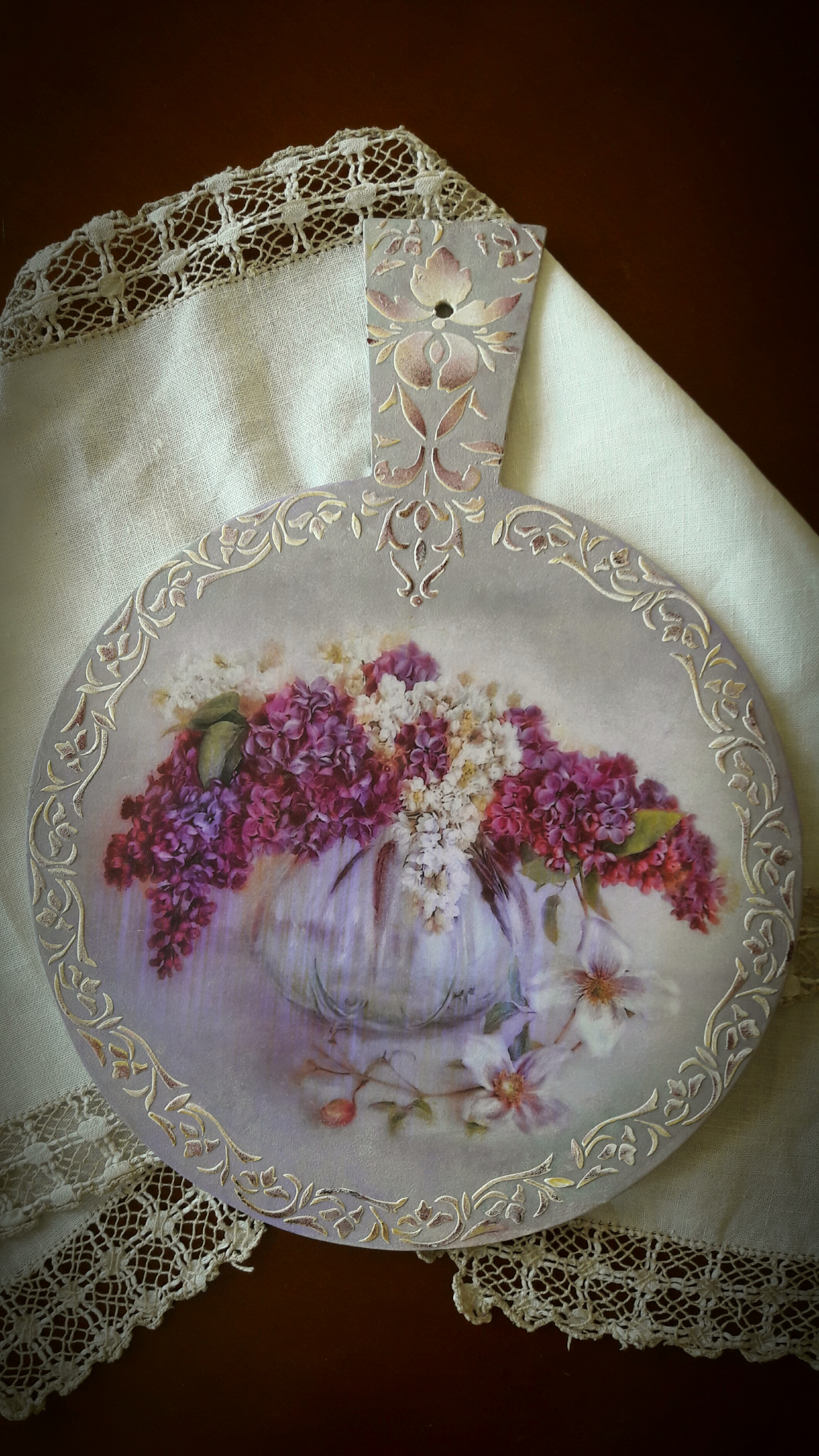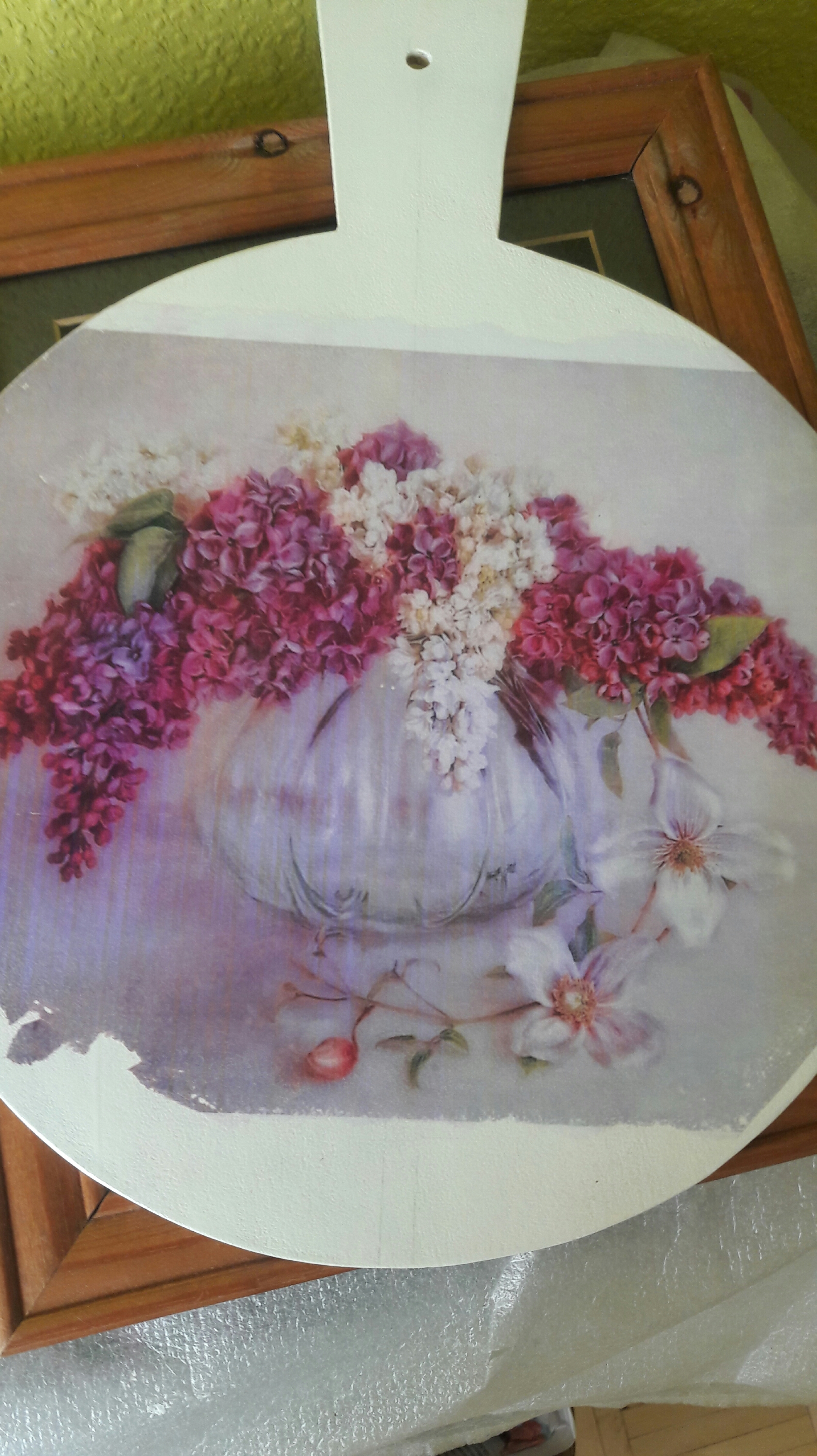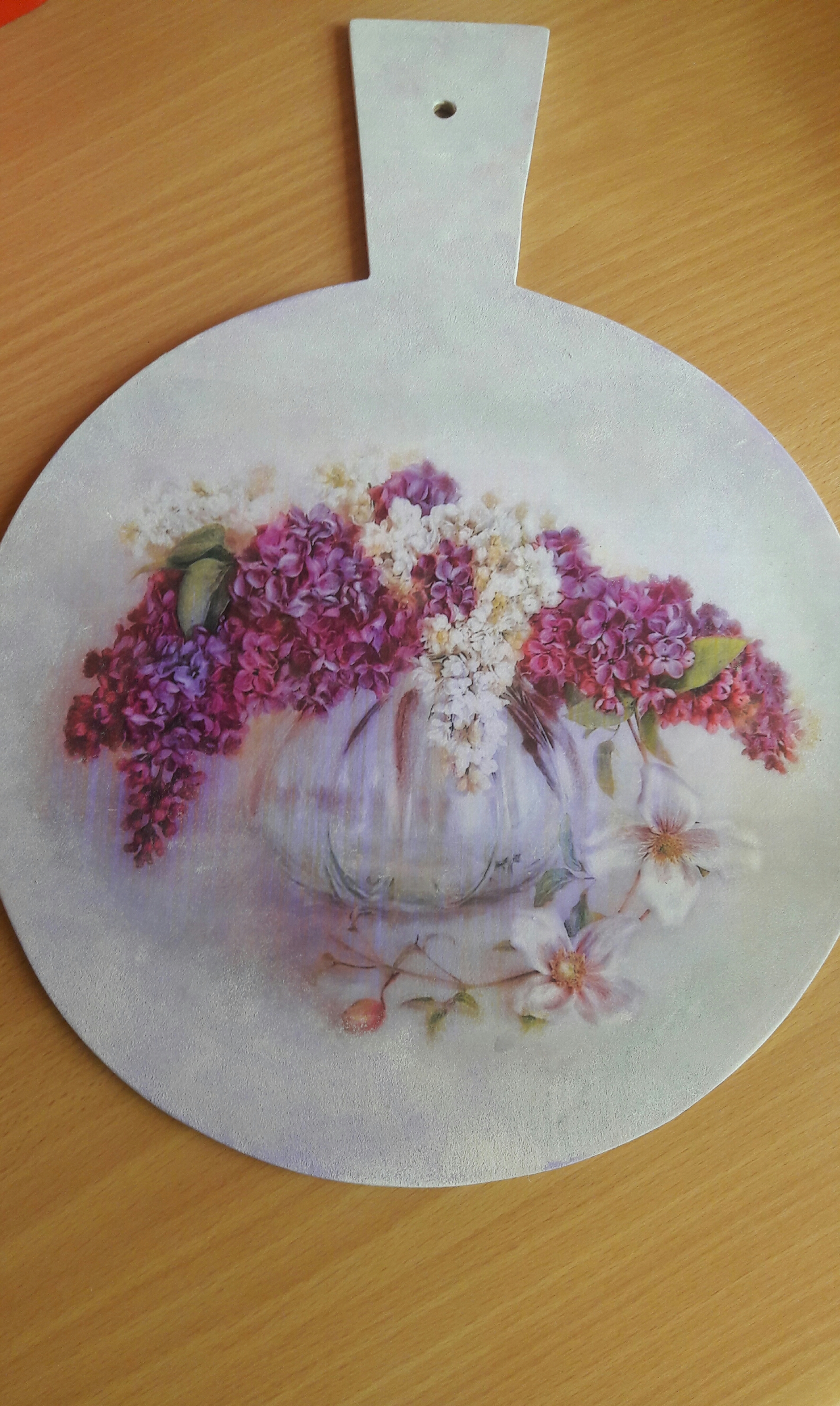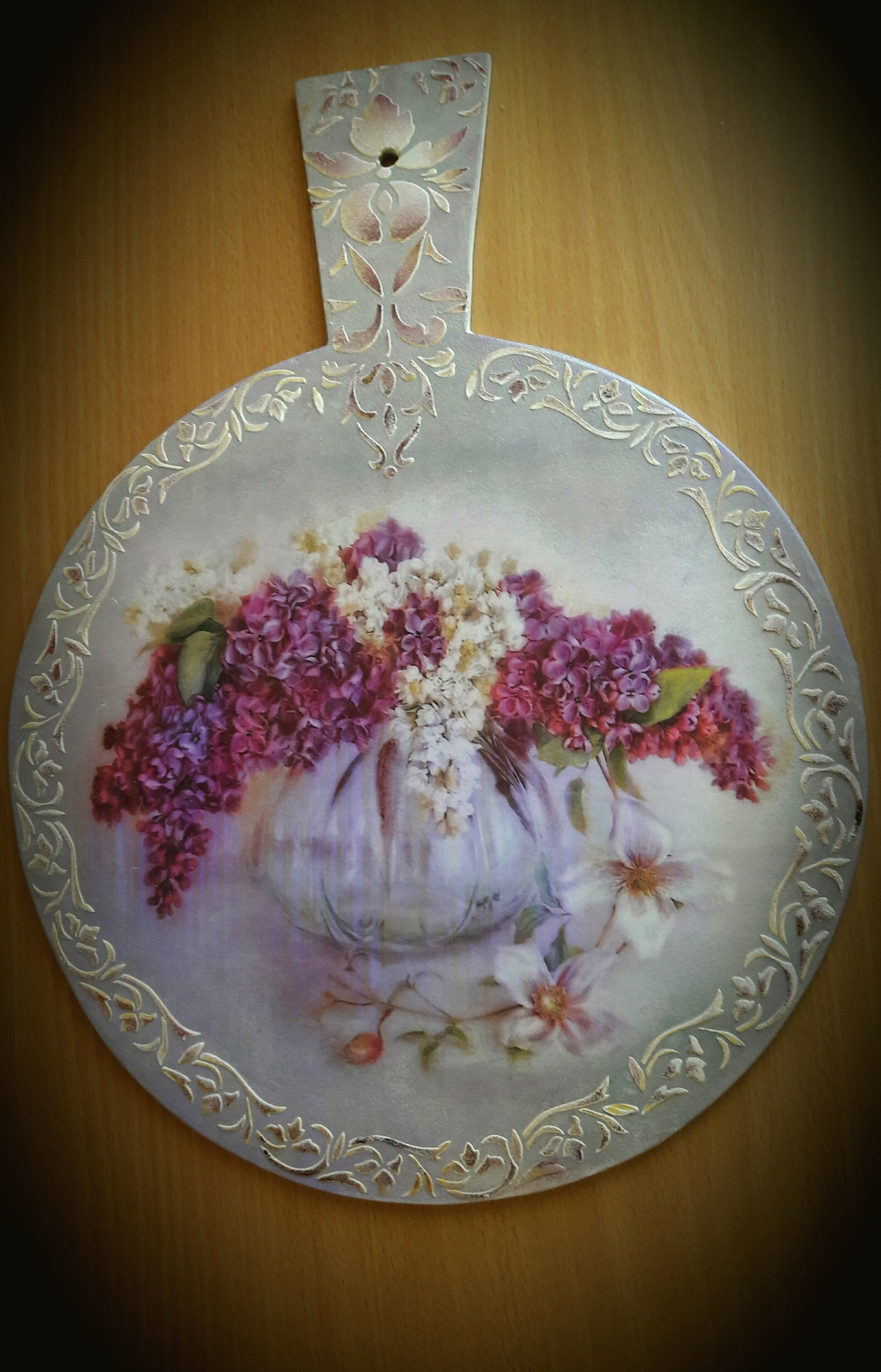 На этот раз у меня не досочка, а скорее иммитация. Вроде бы большая, но тонкая для кухонных дел непригодная. Вот я и решила из нее сделать украшение. В процессе работы сделала несколько фото, думаю процесс ясен и понятен.
