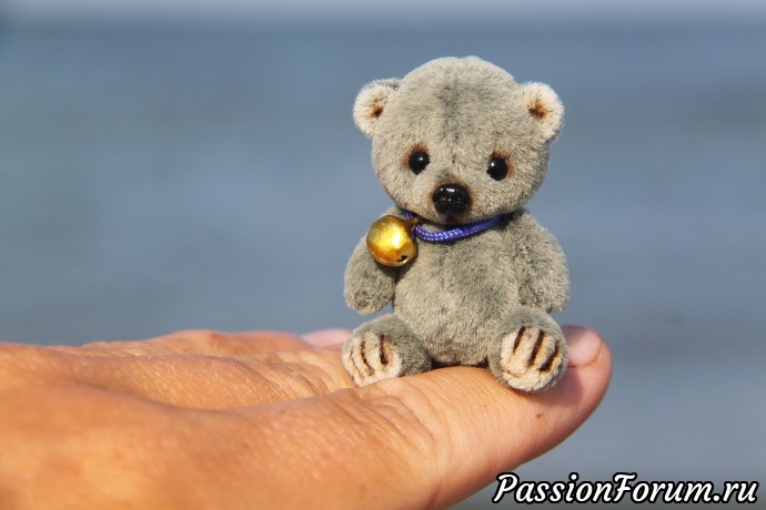 Малыш выполнен в технике тедди, голова и лапки подвижны. Рост 4 см. Самостоятельно сидит.