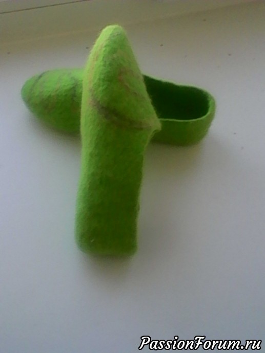 Добрый день мои дорогие подружки по валянию. Давно я не ничего не показывала, была на даче, периодически приезжала , просматривала ваши работы.Какие вы все молодцы! Вот хочу поделиться с вами экспериментом. Прочитала, что некоторые валяют тапки из 50 гр шерсти на 38 размер, решила попробовать.Взяла шаблон, длиной 38, разложила шерсть камтекс, 50 гр на оба тапка