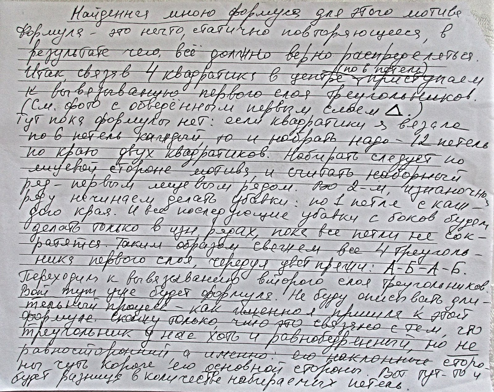 Связать этот мотив можно было бы самыми разными и непохожими друг на друга способами, но я выбрала для себя один: связать сначала 4 малюсеньких квадратика в центре, а потом вокруг них слоями накручивать треугольники.