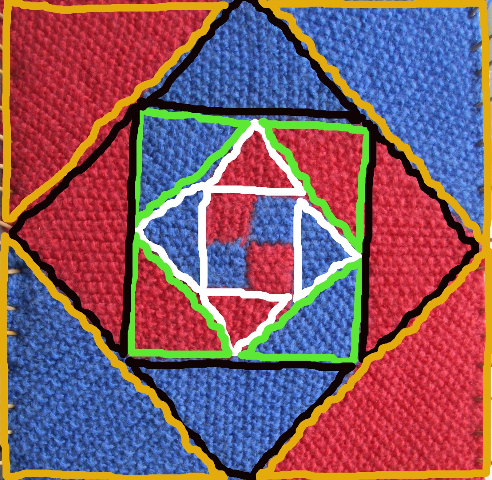 Итак, на готовом мотиве все уровни (слои) треугольников обведены разными по цвету контурами: