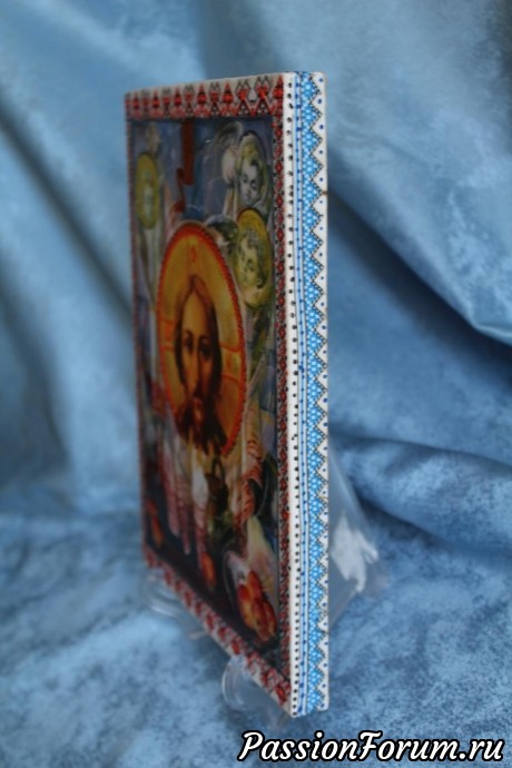 Леночка, большое спасибо! Первая досочка — новенькая. У меня лежала досочка другая с этим мотивом приклеенным целый год — к прошлогоднему Спасу не успела( делала другие работы). Хотела сделать с занавеской и имитацией вышивки мережки, но пришла подружка и принесла свою досочку и попросила сделать досочку с этим мотивом. После этой моя ну никак не делалась, уж очень эта мне понравилась и я свою опять на год в шкаф убрала.