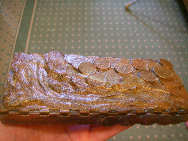 Понравились шкатулочки! Камень получился отличный!!! Браво!!! У меня с камнями дружба как то не складывается… 3D гель тоже показался лишним. На фотографии впечатление, что на шкатулку что-то пролили. А купюрницу захотелось попачкать… может илу добавить, грязи, ведь сеть со дна морского вытащили, а монеты там много лет лежали, наверняка блеск такой не сохранили…
