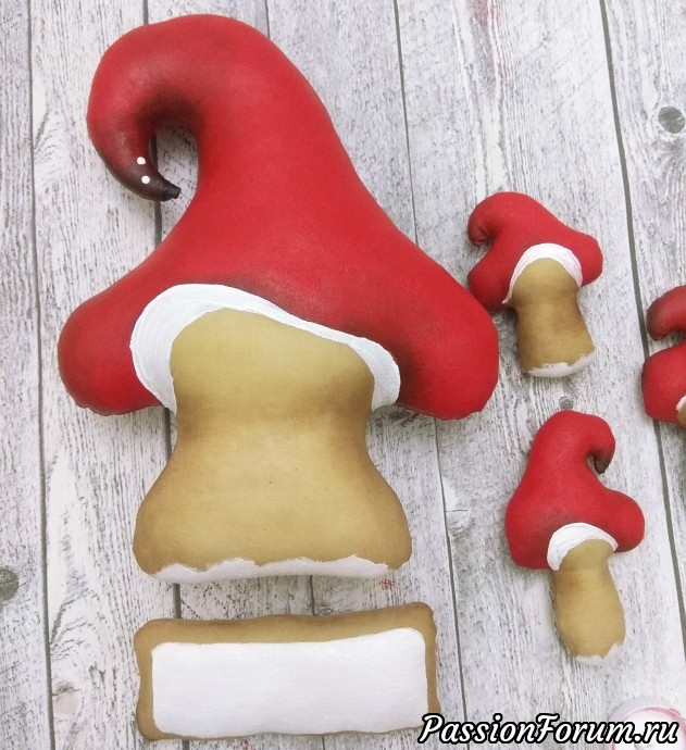 Поэтому я, сидя вчера вечером и смотря на остатки белой бязи, вела внутренний диалог с собой. Одна часть "меня" приказывала :"Брось эти куски, иди спать, не ищи себе приключений на ночь глядя!" А вторая, неугомонная, с шилом в N-ном месте, лукаво шептала :"Посмотри, какие кусочки аппетитные, как раз на грибочки хватит, да и акрил ты тут новый прикупила, надо его открыть, да и вообще, мастер ты или слабак полудохлый?" ( Это после того, как весь день провела за швейной машинкой )