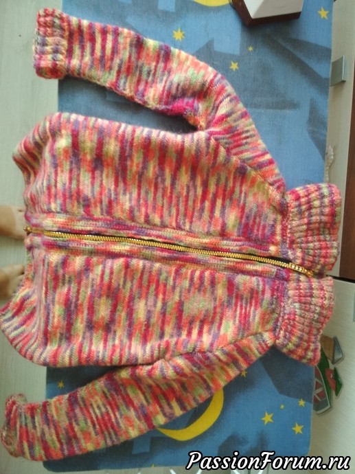 Интересный узор, хорошо смотрится на секционке. И молнию хорошо вшили, для меня это всегда мучение. А такой широкий воротник и манжеты — так было задумано?