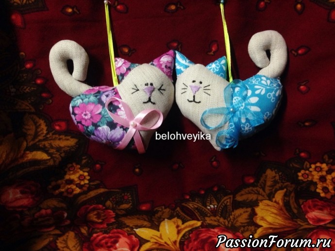 Коты-валентинки,нашла в инете, автора не знаю.Нарисовала выкройку сама от руки, она простая.Сшила по фото. Мордочки вышила нитками.Если будут замечания, пишите, я всё учту.