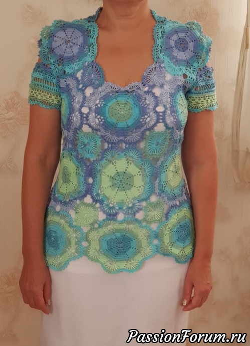 За чуть более двух недель связала кофту из чудесного мерсеризированного хлопка Ушло примерно 250 грамм, крючок 1.4. Пряжа Alize miss batik 280 метров в 50граммах. Пришлось много думать о том, как сочетать пряжу- в мотивах все казалось очень красиво, а дальше начинались сомнения, в итоге мне кажется перед и рукава мне нравятся, спина - меньше. Придумала сделать шнуровку сзади, т.к. у меня узкая спина и сзади получалось слишком свободно.