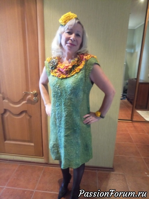 Добрый день, дорогие валяльщицы! Выставляю свою работу по МК Ирины Садыковой "жатый шелк" сваляла вот такой наряд "Золотая Осень" почему то захотелось побыть осенью в ее наряд . С двух сторон шелк с лицевой стороны эксельсиор изнанка разряженный шерсть 18мк 40гр
