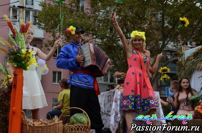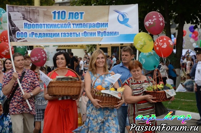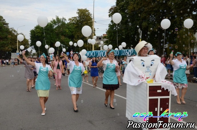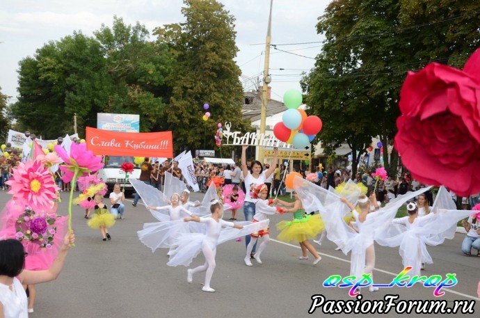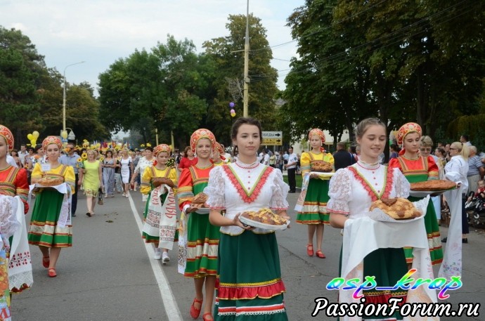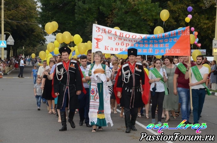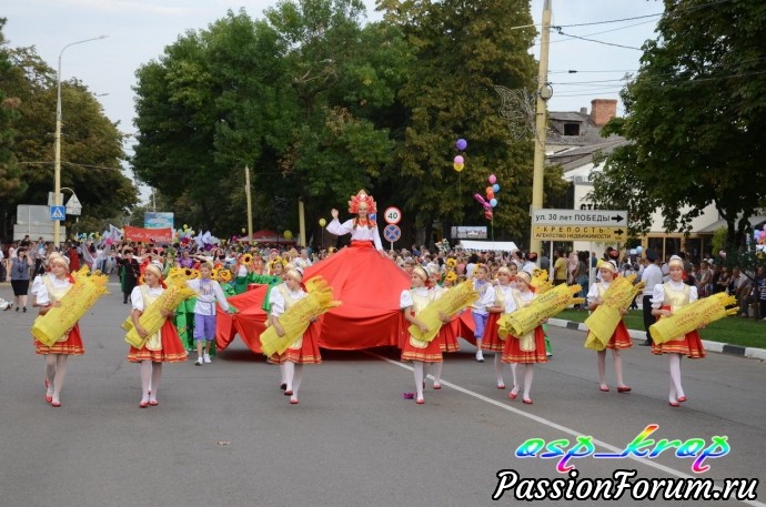 Каждый год у нас проводится день района - в каждую 1 субботу сентября. И каждый раз новая тематическая линия. В этом году была - Кубань - житница России. Каждое муниципальное учреждение представило на конкурс испеченные караваи и хлебобулочные изделия. Но гвоздь праздника - карнавальное шествие. Было много концертов, поздравление молодоженов, юбиляров, а также новорожденных. к этому дню весь район готовится заранее не один месяц. Праздник закончился праздничным салютом. В этот день для меня уже стало традицией участвовать в ярмарке мастеров района. Интересно встретиться с мастерами, обменяться новостями и мастер классами.