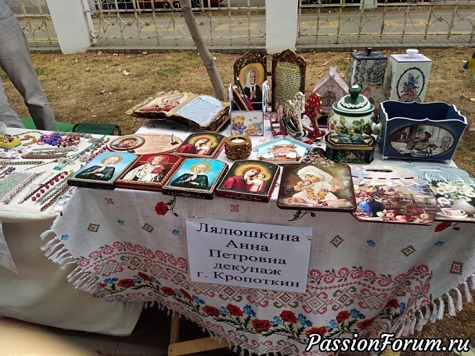 Как же здорово, когда проводят такие праздники! С удовольствием прогулялась с тобой. Представляю, как было весело. Твой столик очень солидный, с красивыми работами. У тебя шикарное платье. Очень люблю такие. Атаман красавец!