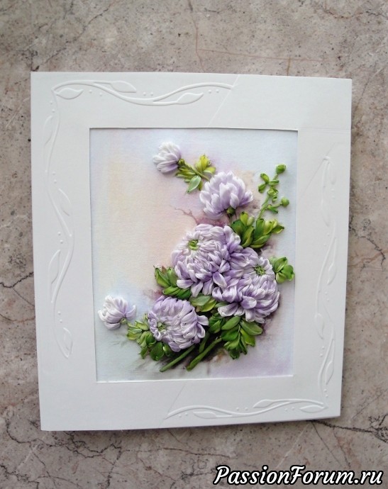 Очаровательные хризантемы, если можно так сказать про цветы, так искусно вышиты… и обрамление — лаконичное! Очень красиво!!!