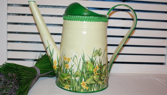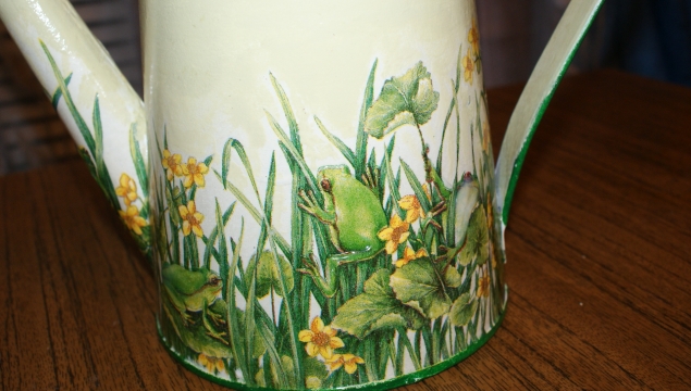 И наконец лейка.Люблю я их делать!Тоже заказ,причем постоянной клиентки.Делаю ей уже третью лейку.Сюжет она выбирала сама.Лягушата выделены 3д гелем.