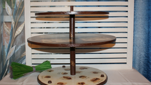 Здравствуйте,рукодельницы!Все работы сделаны на заказ.Журнальница улетела в Питер.Заказчица осталась довольна,сказала.что она очень хорошо вписалась в интерьер.Я рада.Этажерку под сладости сам смастерил брат мужа и попросил,что-нибудь с ней сотворить.Вот такое мне привиделось.Правда я еще по ребрам наклеила свое любимое кружево и она заиграла.Фото сделала до наклеивания.Сфотографирую и завтра выставлю,дадите оценку.Знаю,что некоторым не нравится кружево,а мне оно на душу ложится.