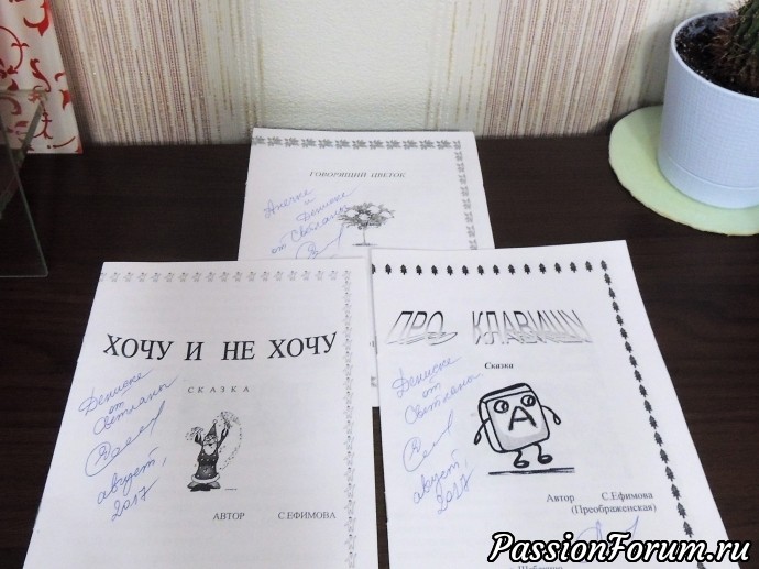 Здравствуйте, милые девочки! Хочу поделиться с вами неожиданной радостью! Есть у нас на сайте прекрасный человек с большим сердцем и конечно же она так же является Феей детей! Получили мы, не так давно, не понятный для нас конверт. Думаю, что же это такое...? Ну что гадать, открываю, а там книжечки и раскраски, но необычные, а написаны, самой Феей! Светлана Ефимова, автор всех этих книжек! https://www.passionforum.ru/users/23553 Я несколько уже прочла, мне очень понравились, напомнили мультфильмы ...