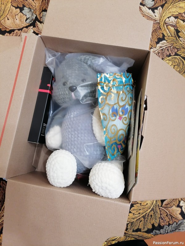 Мне сегодня пришла посылочка по зимней игре от vol27 Когда добежала до почты, обомлела, мне вынесли настоящую красивую новогоднюю подарочную коробку! А что, так можно было? - спросила я оператора, она пожала плечами Поделитесь секретом, как уломать ПР на отправку посылок в таком оформлении) Открываю коробочку Разворачиваю пакетики, и тут меня ждало: Поближе покажу подарочки Для творчества еще были фетровые вырезки, но забыла их в кадр поставить, носочки очень красивые! А на это...