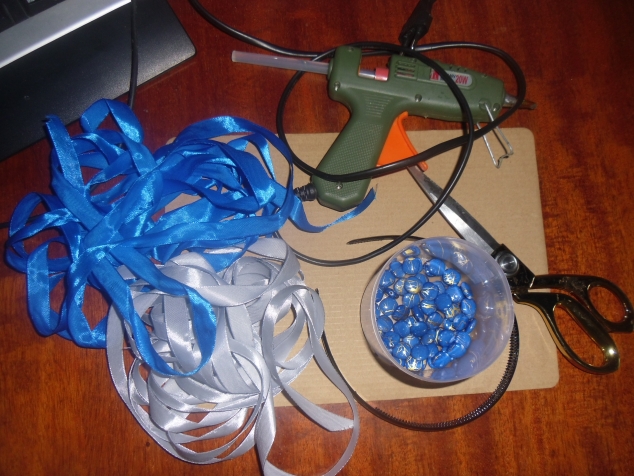 Рука не поднялась дарить просто бутылку...) Собрались мы с родителями поздравлять нашу замечательную руководительницу танцевального коллектива, где занимаются наши детки. Скинулись на подарок, цветы, а потом решили - Новый год на носу, - и прикупили еще и бутылочку шампанского... Но не поднялась у меня рука просто подарить ее в пакете, и пользуясь тем, что до дня рождения оставалось еще 2 дня - села я крутить цветочки...) Но, хоть Новый год и близко - решила все же обойтись без нового...