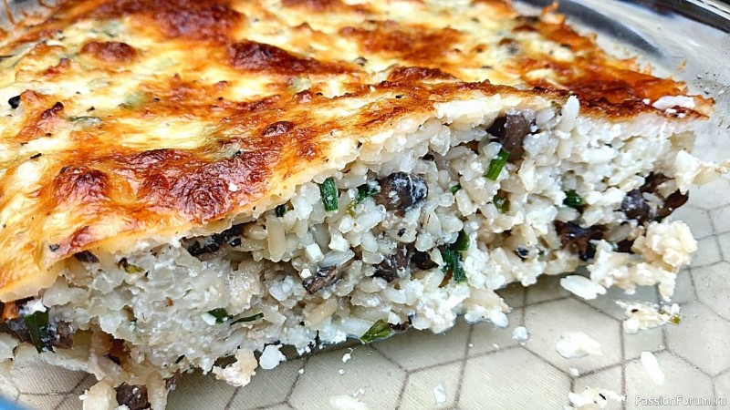Запеканка из риса с фаршем,грибами и сыром приготовленная в духовке