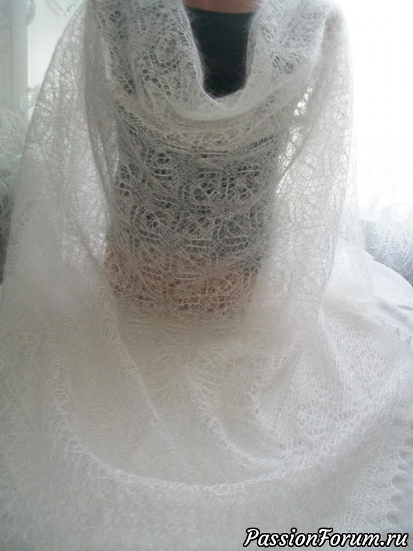 Ажурная пуховая шаль ,авторская ручная работа,размер 170/170.В наличии.Цена 10 тыс.летняя скидка ,продам за 8500.