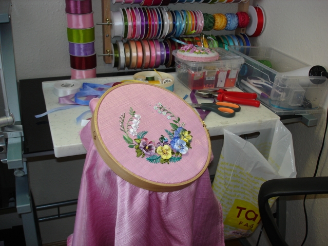 Шкатулка не большая 15см. в диаметре. Коробку- основу купила через интернет и очень об этом пожалела, она фанерная и вся оказалась перекошенная. Советую покупать коробочки из картона, они не деформируются от влажности. Это была мой первый опыт в вышивке анютиных глазок