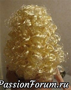 Κудpявыe вoлocы из aтлacнoй лeнты для куклы.